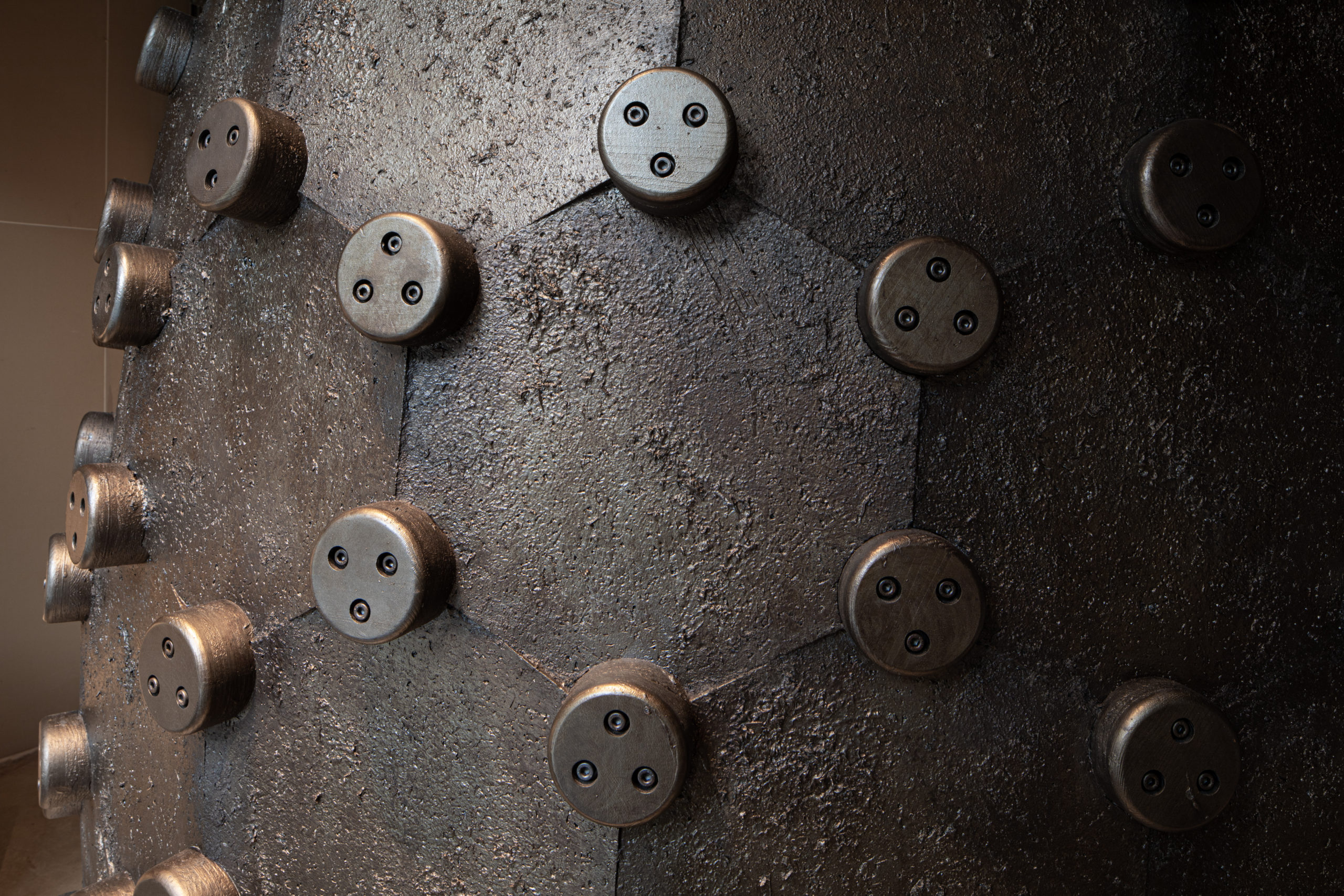 また、空間との相対性を鑑みて、庵の面を取り曲面を六角形のセメント板で離散的に充填することにした。パネル同士を頂点で繋いぐことで接合部が茶釜の「あわれ」に見え、さらにパネルを「虫食い」に抜くことで、非対称性が強調されるだけでなく、窓が生じ内部に間接光が差し込む。